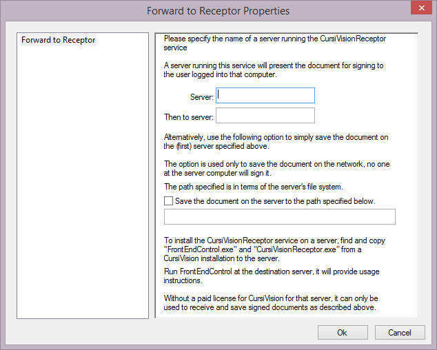 for the purpose. This service, the CursiVision Receptor, listens on a port for incoming requests to transfer a document and launch CursiVision.