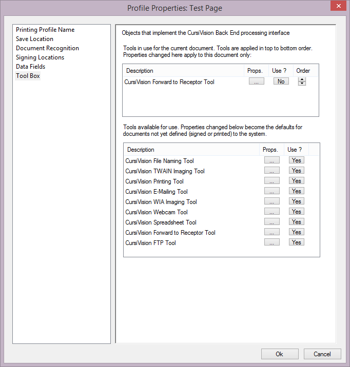 Click on the props button for the tool in the upper list and you will be presented with settings as depicted in Figure 2.